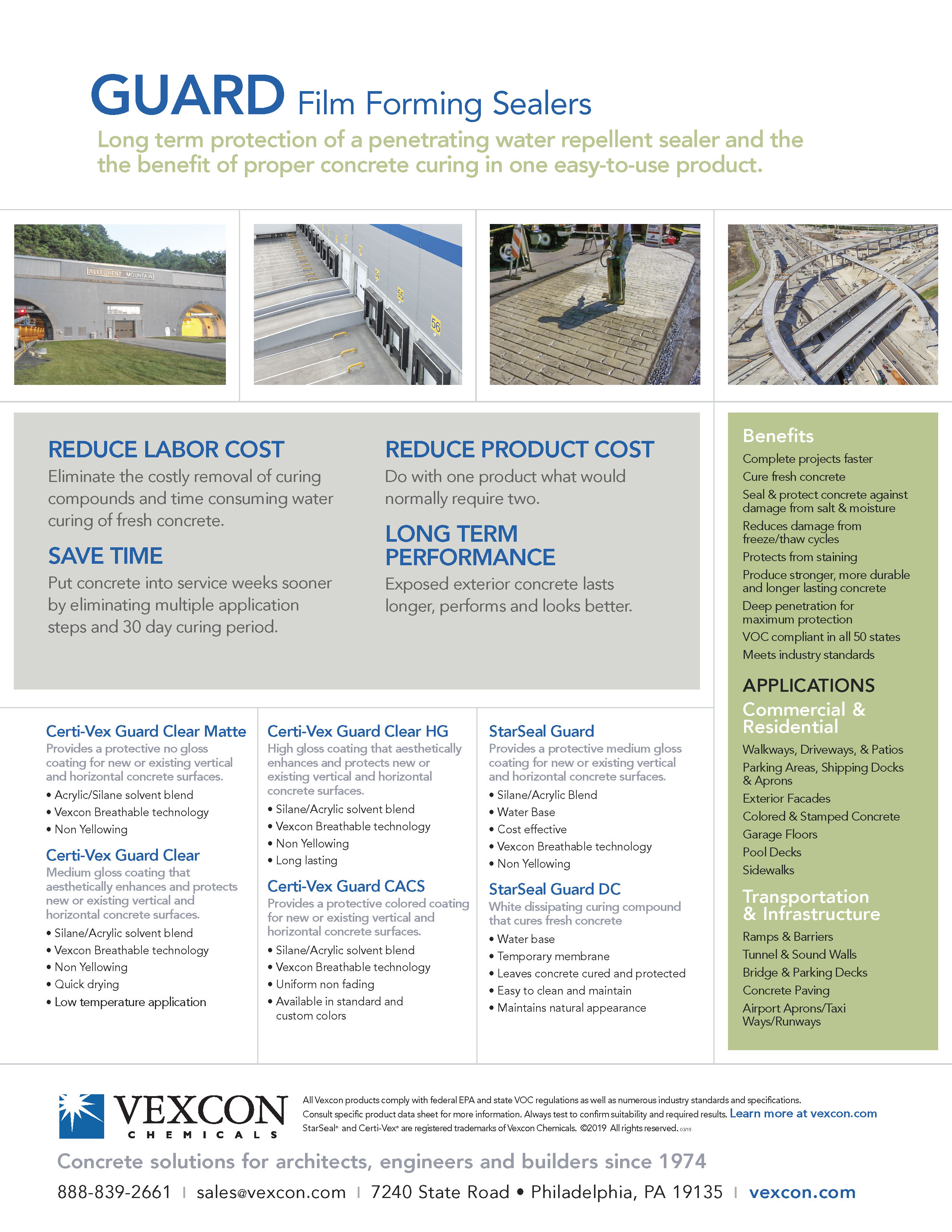 FOR IMMEDIATE RELEASE Date: September 1 2018 Vexcon Announces New Products to Protect Concrete PowerSeal & Certi-Vex SS PLUS are cost effective clear water and solvent based silane/siloxane water repellent sealers for use on vertical and horizontal surfaces. Use on brick, block, concrete, pavers and some natural stones. Assists in preventing efflorescence, damage from […]